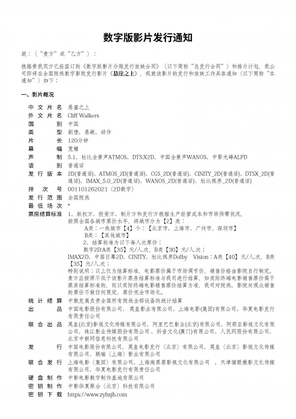 关于影片《悬崖之上》密钥第三次延期的通知