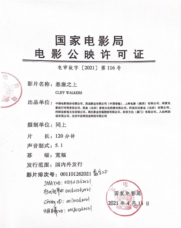 发 行:中国电影股份有限公司、英皇电影发⾏(北京)有限公司、英皇(北京)影视⽂化传媒有限公司、联瑞(上海)影业有限公司