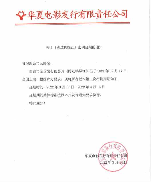 《跨过鸭绿江》密钥延期的通知