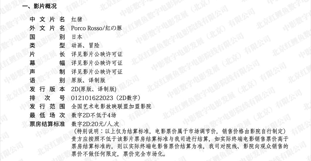 《红猪》艺联专线上映说明