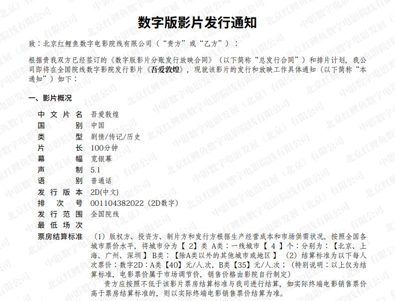 关于影片《吾爱敦煌》第三次密钥延期的通知
