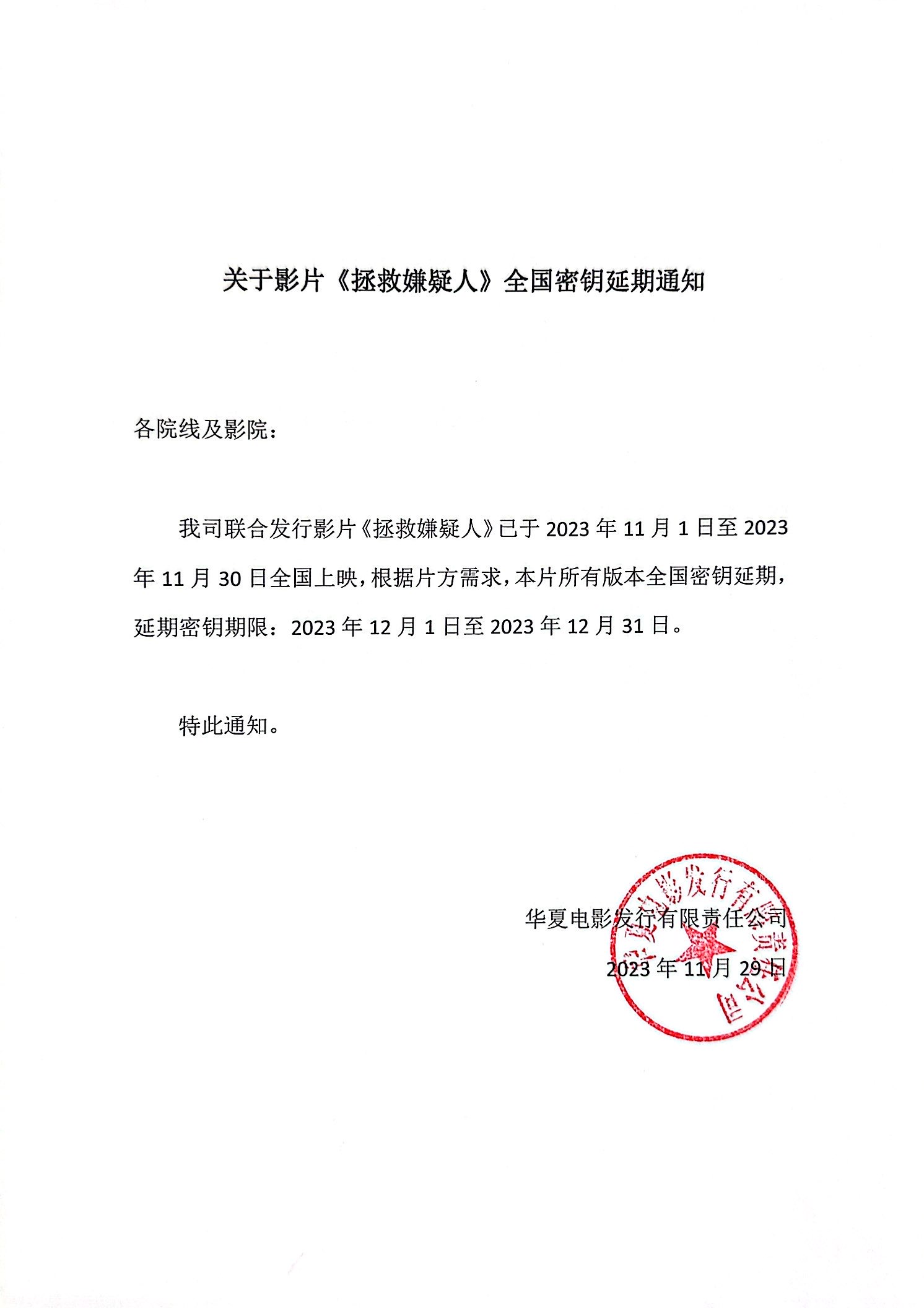 《拯救嫌疑人》变更点映信息的通知