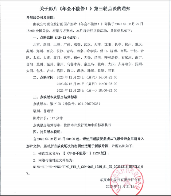 发行通知 » 《年会不能停!》第三轮点映的通知