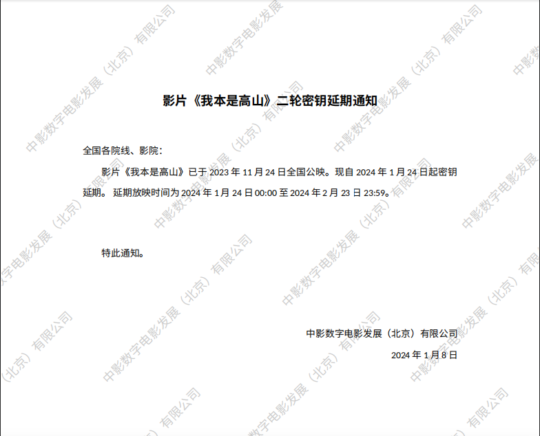 《我本是高山》第六次密钥延期的通知