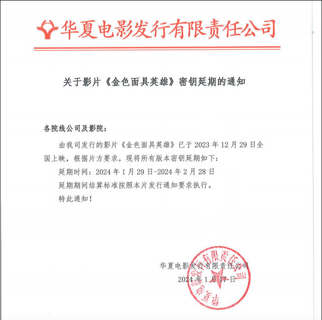 《金色面具英雄》密钥延期的通知