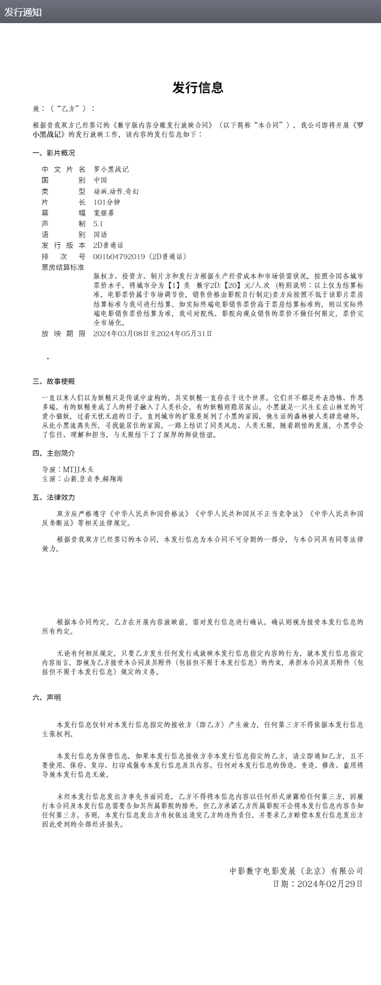 《罗小黑战记2》发行通知