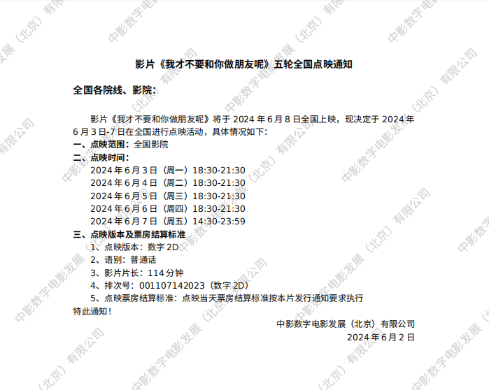 影片《我才不要和你做朋友呢》第三轮点映通知