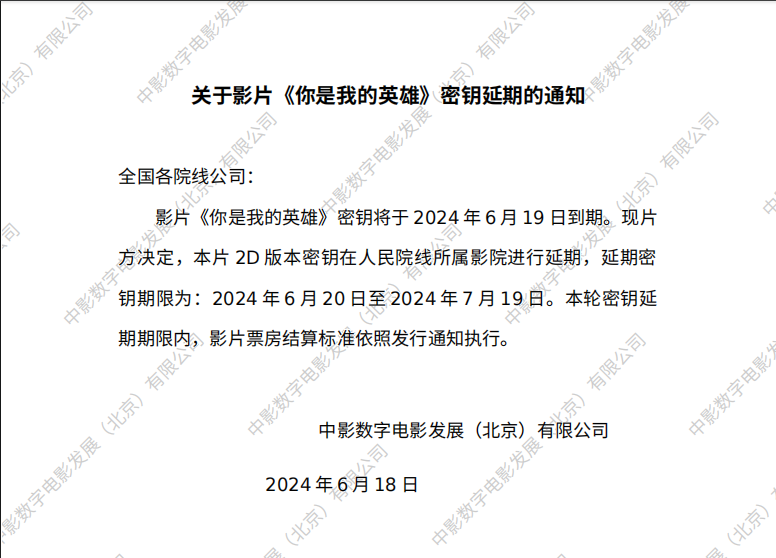 《你是我的英雄》第十六次密钥延期的通知