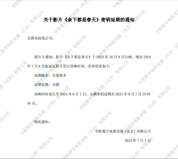 《余下都是春天》密钥延期的通知