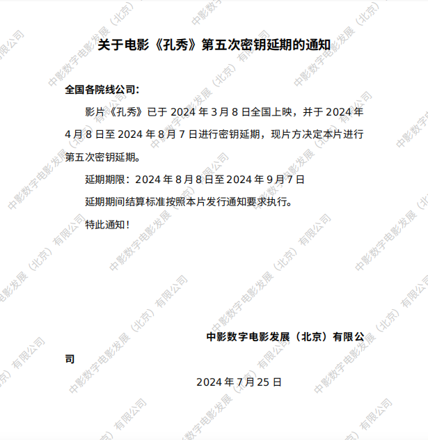 《孔秀》第四次密钥延期的通知