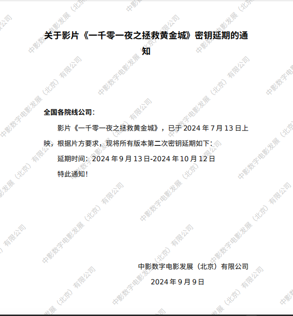 《一千零一夜之拯救黄金城》数字版影片发行通知