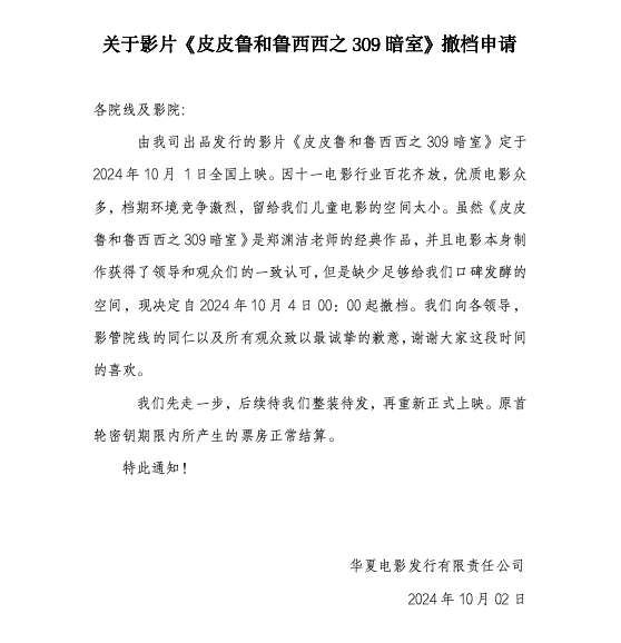《皮皮鲁和鲁西西之309暗室》发行通知