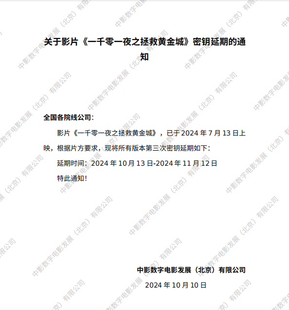 《一千零一夜之拯救黄金城》数字版影片发行通知