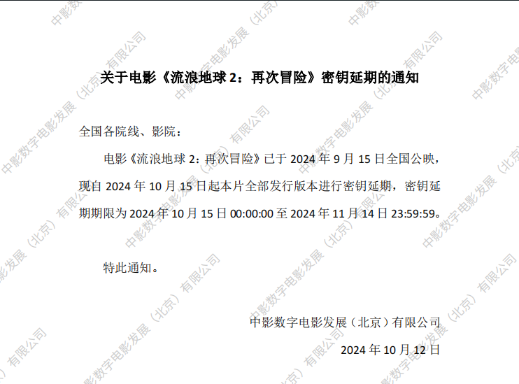 《流浪地球2》(3D版)第二次密钥延期的通知