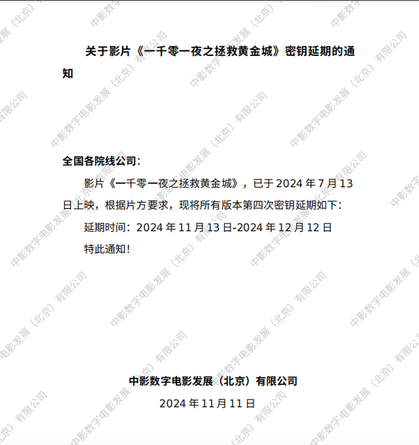 《一千零一夜之拯救黄金城》数字版影片发行通知