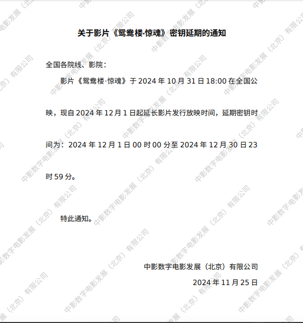 《鸳鸯楼·惊魂》第二次密钥延期的通知
