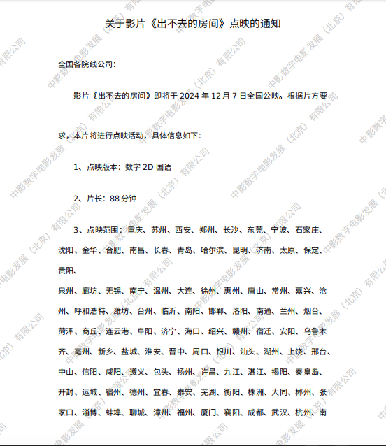 《出不去的房间》发行通知