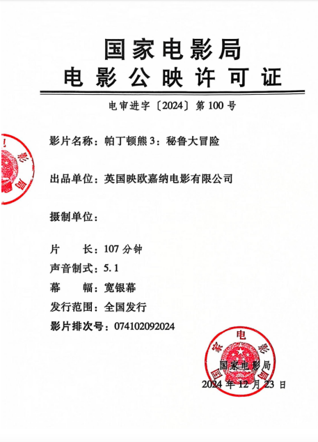排 次 号:详见影片公映许可证