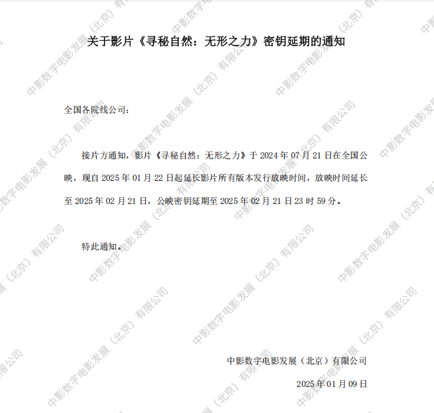 《寻秘自然:无形之力》调整票房结算标准的通知