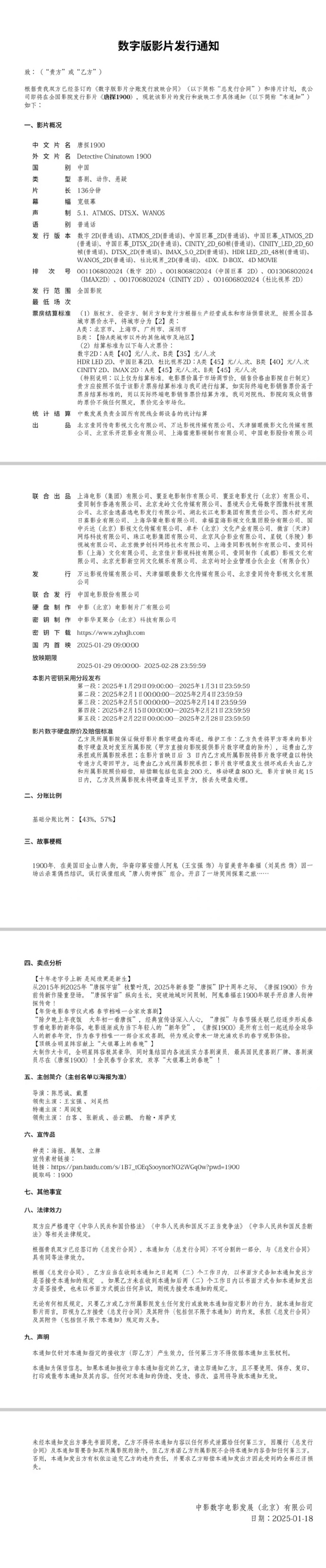 《唐探1900》第三次密钥延期及调整结算标准的通知