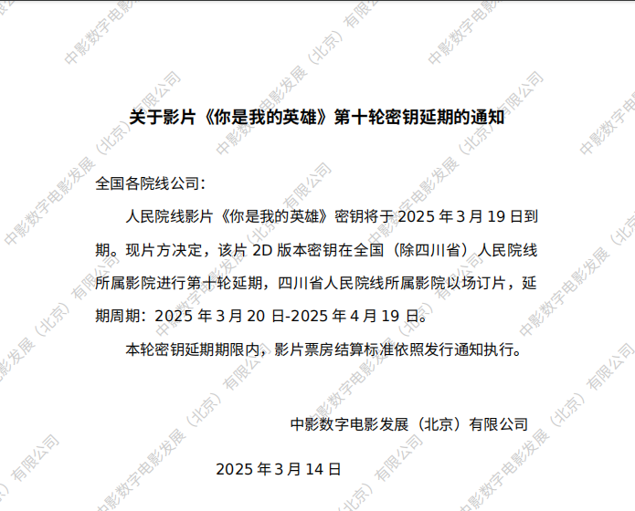 《你是我的英雄》第十六次密钥延期的通知