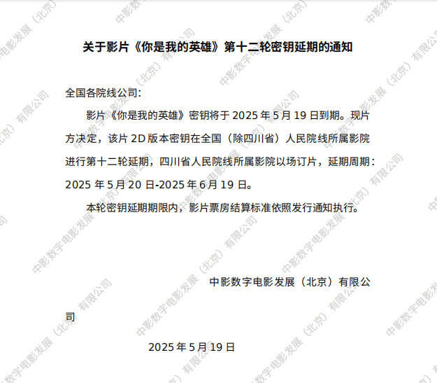 《你是我的英雄》第十六次密钥延期的通知