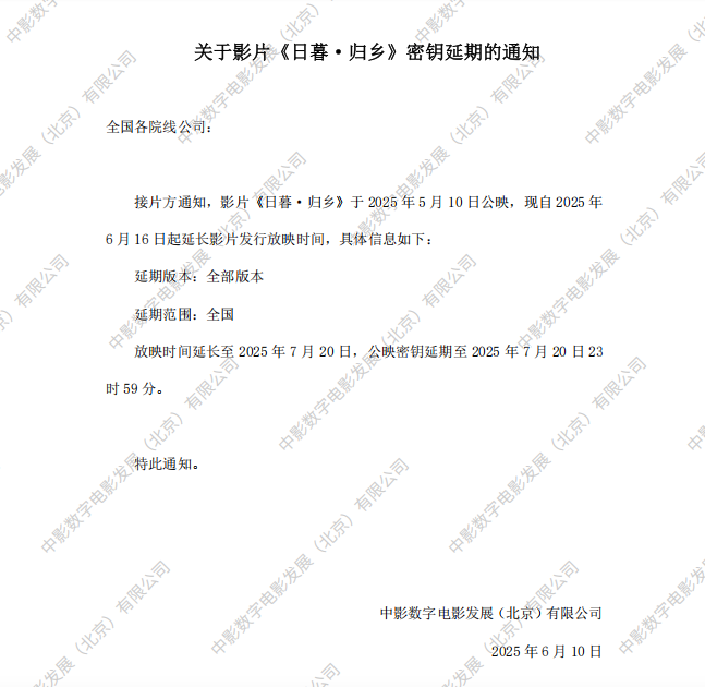 《日暮·归乡》第二次密钥延期的通知
