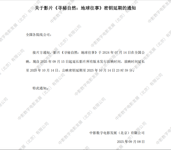关于影片《寻秘自然:地球往事》15次密钥延期的通知