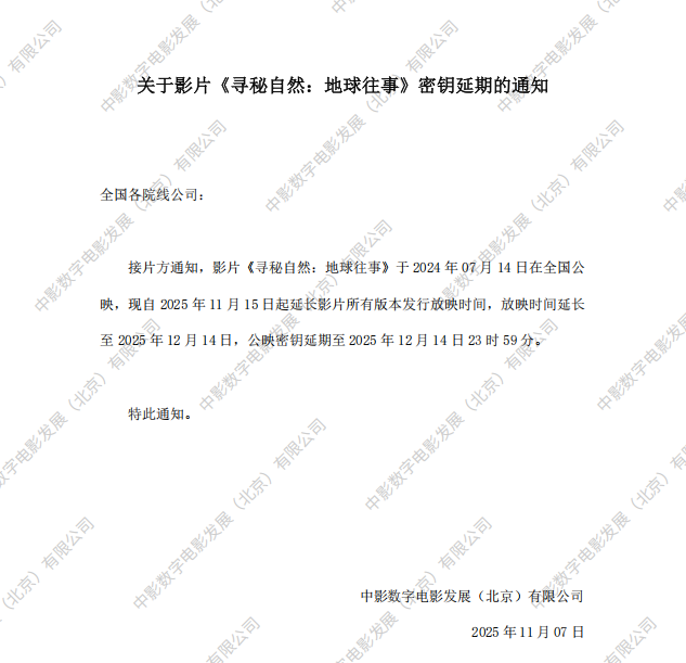 关于影片《寻秘自然:地球往事》13次密钥延期的通知