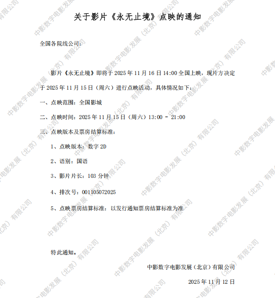 《永无止境》点映的通知