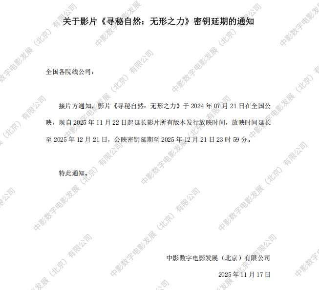 《寻秘自然:无形之力》调整票房结算标准的通知