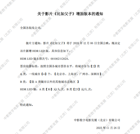 《比如父子》发行通知