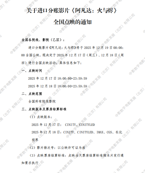 《阿凡达:火与烬》发行通知