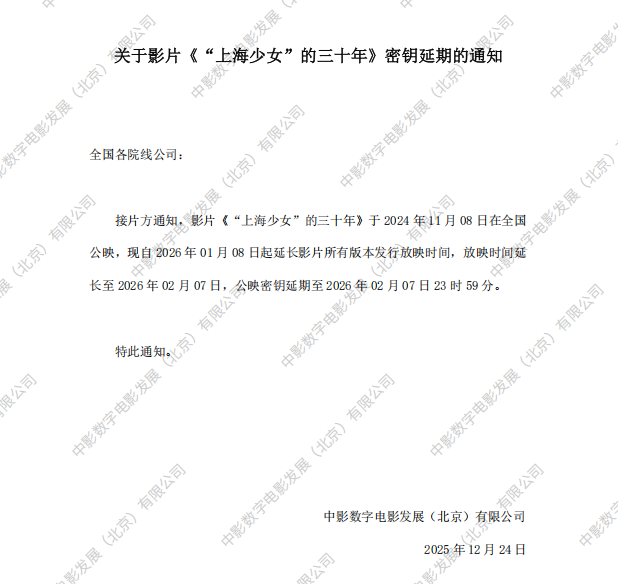 《“上海少女”的三十年》第十二次密钥延期的通知
