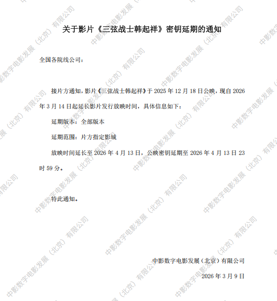 发行通知 » 关于影片《三弦战士韩起祥》第三次密钥延期的通知