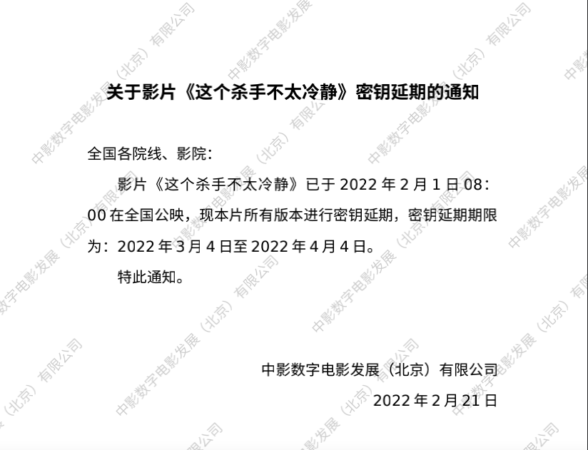 《这个杀手不太冷静》调整票房结算标准的通知