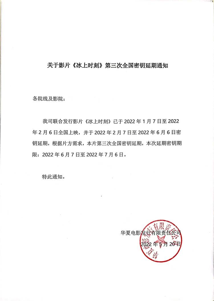 《冰上时刻》第二次全国密钥延期的通知
