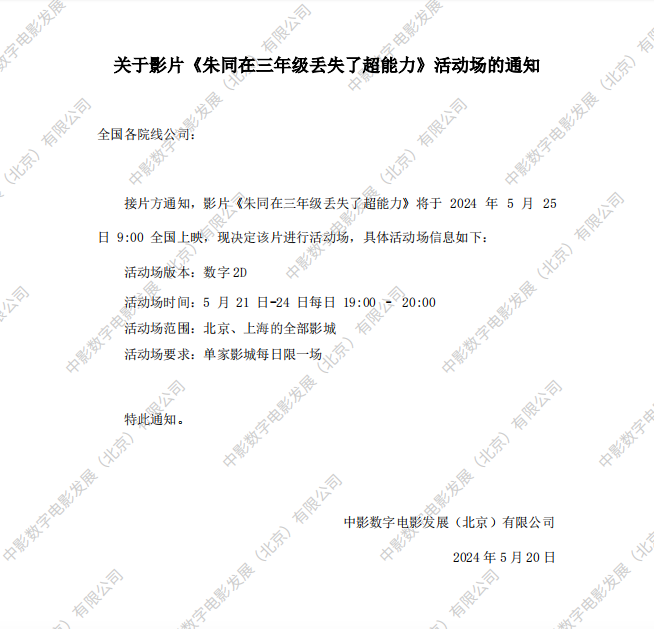 《朱同在三年级丢失了超能力》密钥延期的通知
