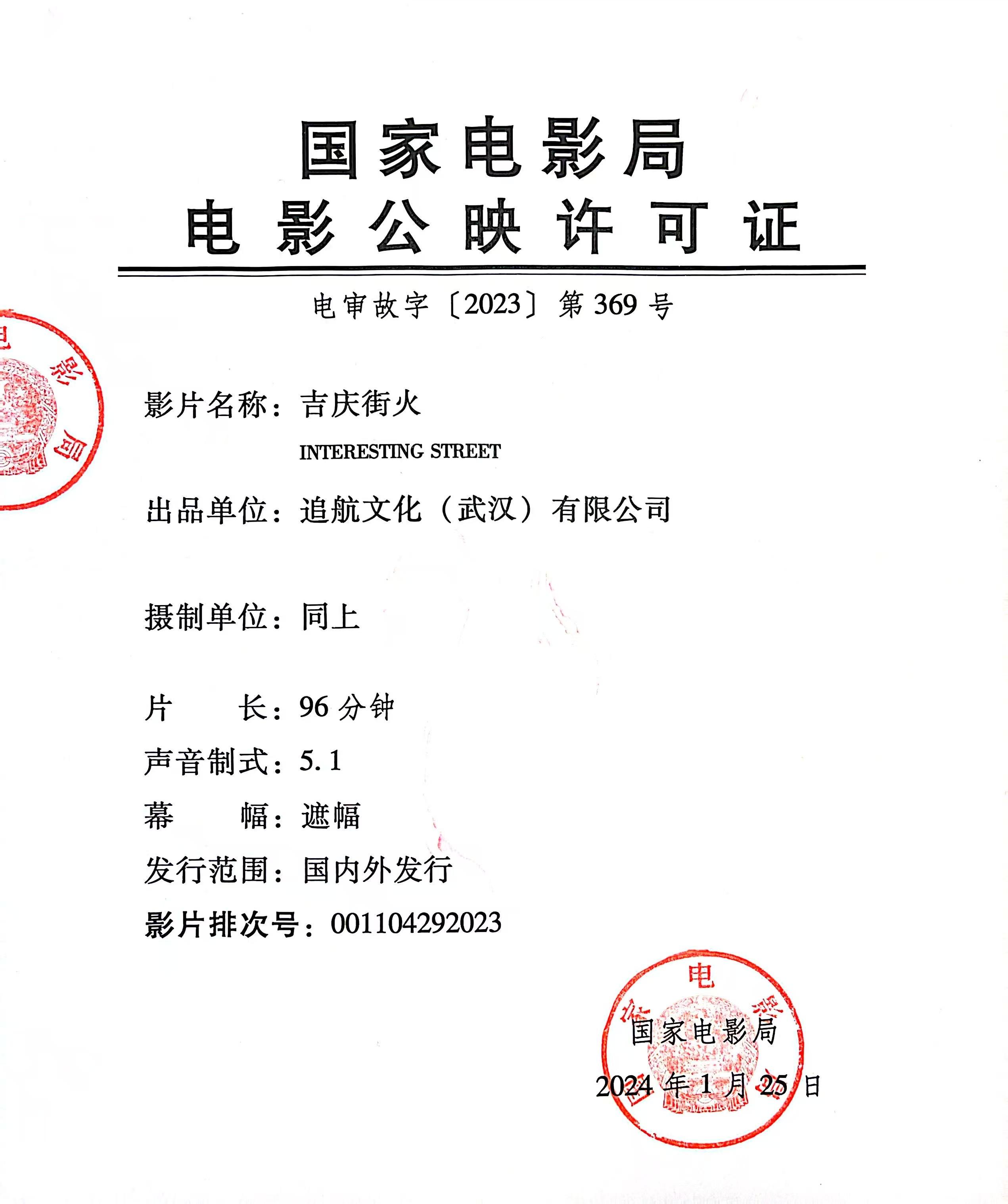 发行通知 » 《吉庆街火》发行通知