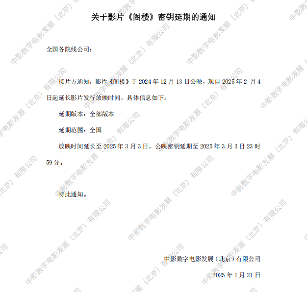 《阁楼》密钥延期的通知