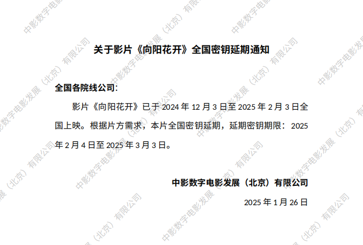 关于影片《向阳花开》全国密钥延期通知 (2)
