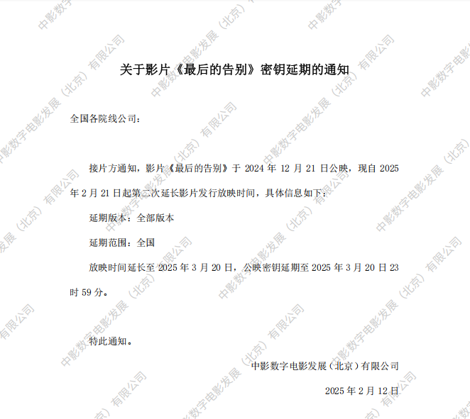 《最后的告别》发行通知