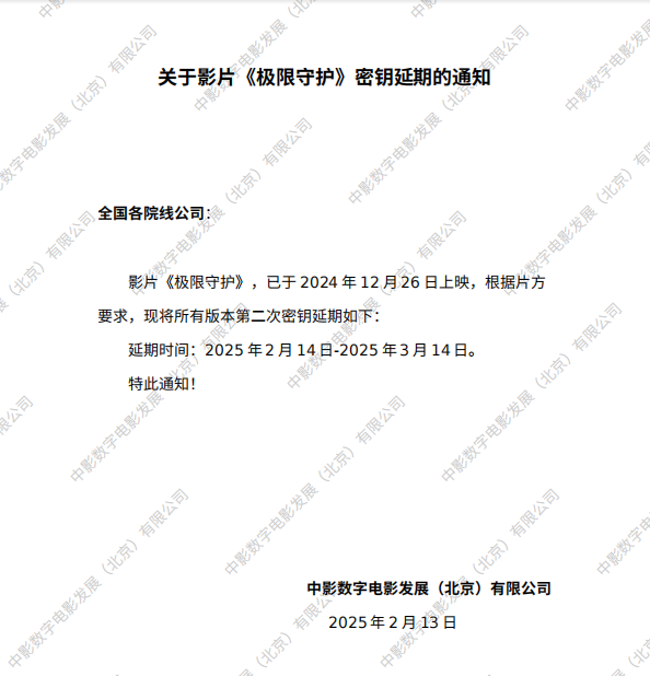 《极限守护》第三次密钥延期的通知