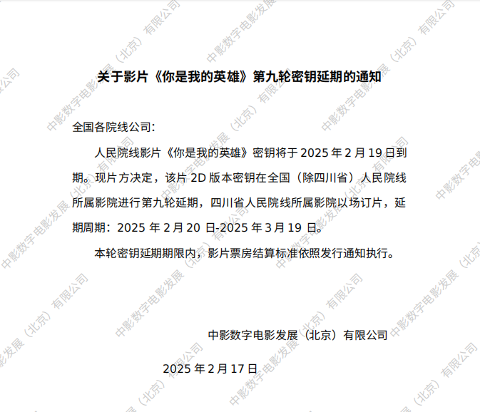 《你是我的英雄》第十六次密钥延期的通知