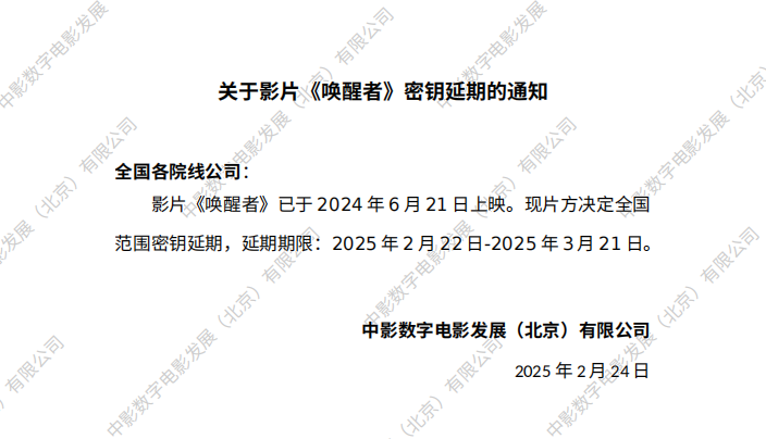 关于影片《唤醒者》密钥延期的通知