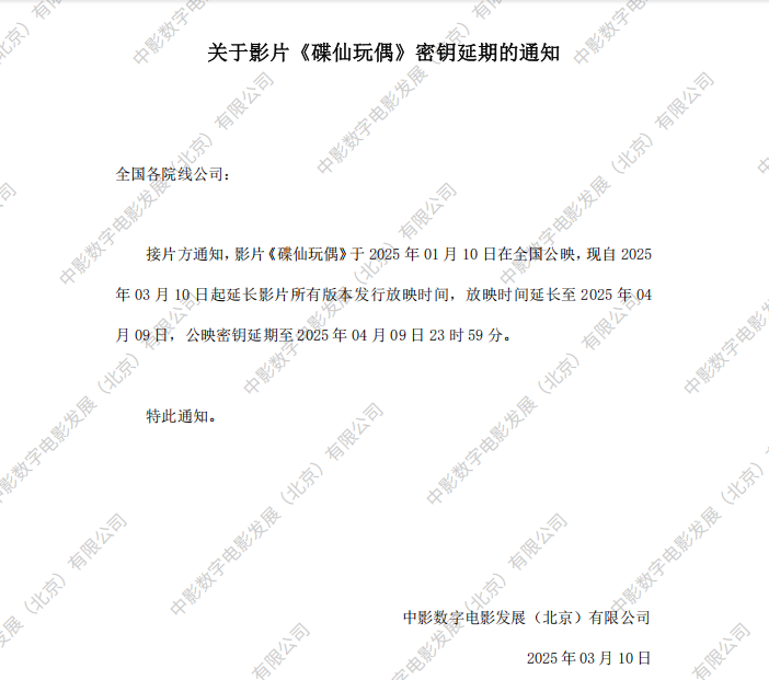 《碟仙玩偶》密钥延期的通知