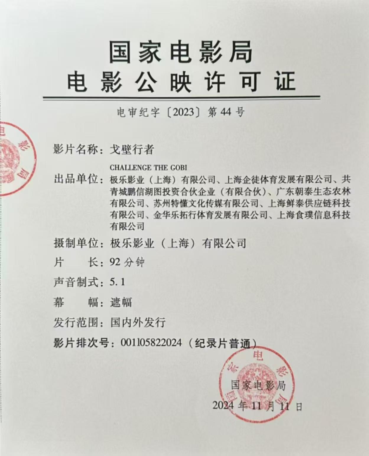 《戈壁行者》点映的通知