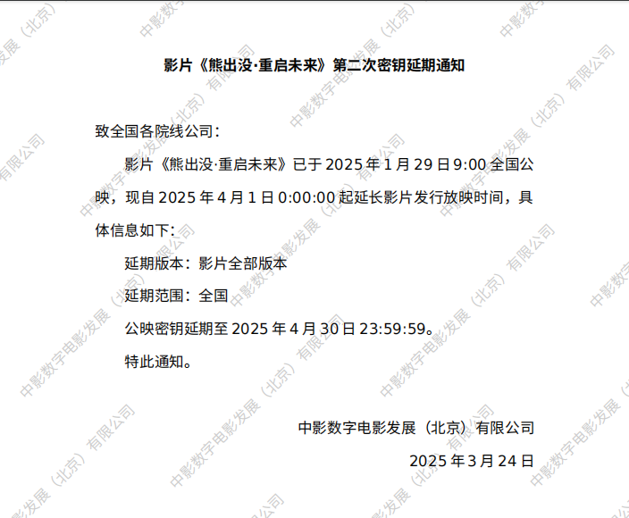 《熊出没·重启未来》第三次密钥延期的通知