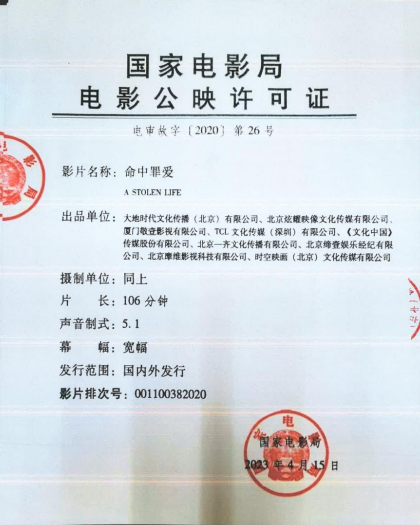 出 品:大地时代文化传播(北京)有限公司、北京炫耀映像文化传媒有限公司、 厦⻔敬壹影视有限公司、TCL 文化传媒(深圳)有限公司、《文化中国》传媒股份有限公司、北京一齐文化传播有限公司、北京缔壹娱乐经纪有限公司、北京摩维影视科技有限公司、时空映画 (北京)文化传媒有限公司