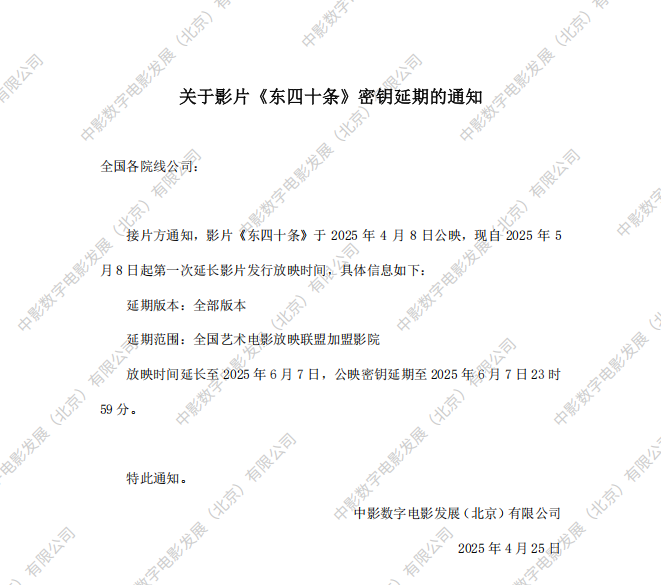 《东四十条》第四次密钥延期的通知